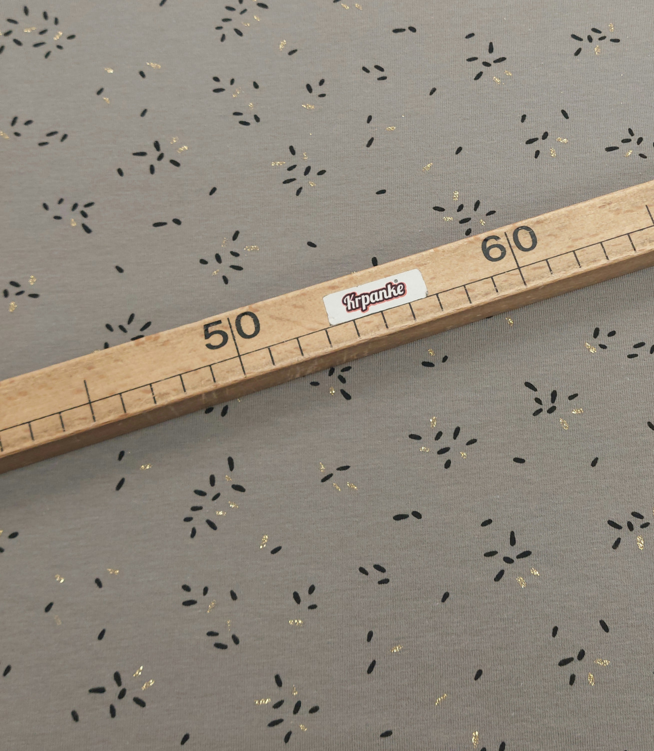 Bombažni jersey -Črne in zlate črtice na old zeleni